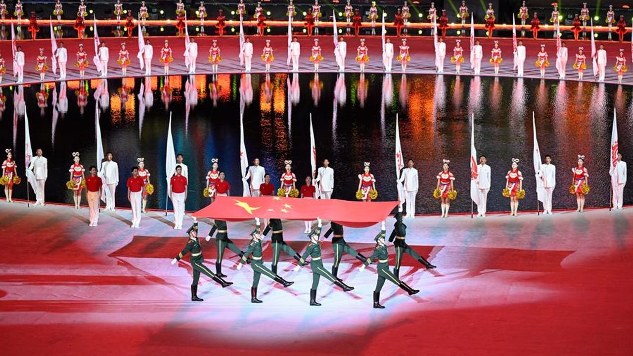 GUANGZHOU, 10 Kasım (Xinhua) -- 15. Çin Ulusal Oyunları pazar akşamı kültürel miras ve teknolojik yeniliklerin ön planda olduğu görkemli bir törenle başladı. Etkinlik ilk kez Guangdong, Hong Kong ve Makao'nun ev sahipliğinde düzenleniyor.