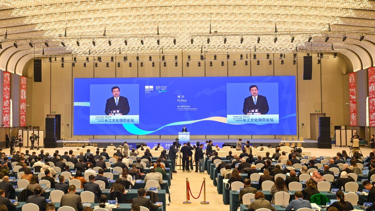 NANJİNG, 22 Kasım (Xinhua) -- Xinhua Haber Ajansı Başkanı Fu Hua, Çin'in doğusundaki Jiangsu eyaletinin merkezi Nanjing'de düzenlenen 2025 Yangtze Kültür Forumu'nda konuşma yaptı, 21 Kasım 2025. Cuma günü Çin'in doğusundaki Jiangsu eyaletinin merkezi Nanjing'de başlayan forum, 30'dan fazla ülkeden, aralarında hükümet yetkilileri, akademisyenler ve diplomatların da bulunduğu 300'ün üzerinde konuğu bir araya getirdi. (Fotoğraf: Ji Chunpeng/Xinhua)■