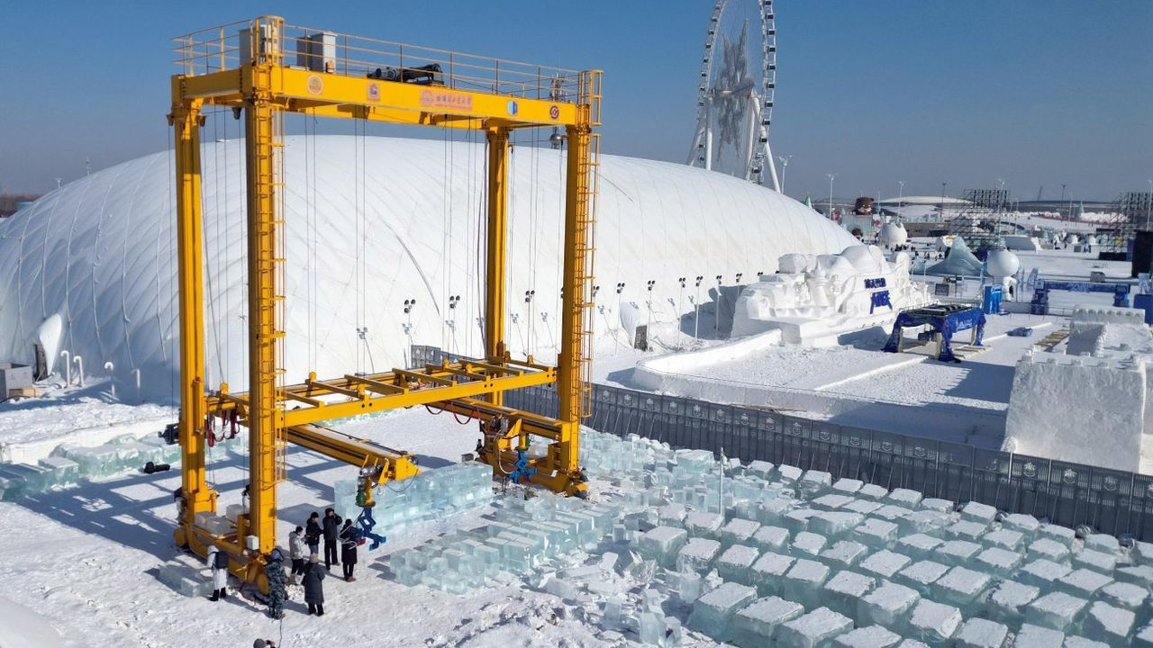 Çin'in kuzeydoğusundaki Heilongjiang eyaletinin merkezi Harbin'de düzenlenen 27. Harbin Buz ve Kar Dünyası'nda büyük ölçekli bir buz heykelinin yapımına yardımcı olan otomatik buz blok istifleme robotu, 3 Şubat 2026. (Fotoğraf: Liu Yang/Xinhua)Çin'in kuzeydoğusundaki Heilongjiang eyaletinin merkezi Harbin'de düzenlenen 27. Harbin Buz ve Kar Dünyası'nda büyük ölçekli bir buz heykelinin yapımına yardımcı olurken su püskürten otomatik buz blok istifleme robotu, 3 Şubat 2026. (Fotoğraf: Liu Yang/Xinhua)Havadan drone ile çekilen fotoğrafta Çin'in kuzeydoğusundaki Heilongjiang eyaletinin merkezi Harbin'de düzenlenen 27. Harbin Buz ve Kar Dünyası'nda büyük ölçekli bir buz heykeli inşa eden otomatik buz bloğu istifleme robotu görülüyor, 3 Şubat 2026. (Fotoğraf: Liu Yang/Xinhua)■