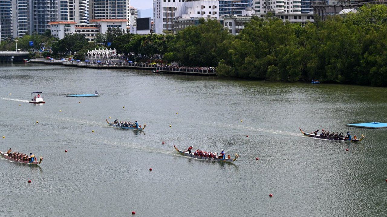 SANYA, 26 Nisan (Xinhua) -- Çin'in güneyindeki Hainan eyaletinin Sanya kentinde düzenlenen 6. Asya Plaj Oyunları'nda küçük ejderha teknesi kadınlar 400 metre düz yarış finalinde Çin takımı altın madalyanın sahibi oldu.