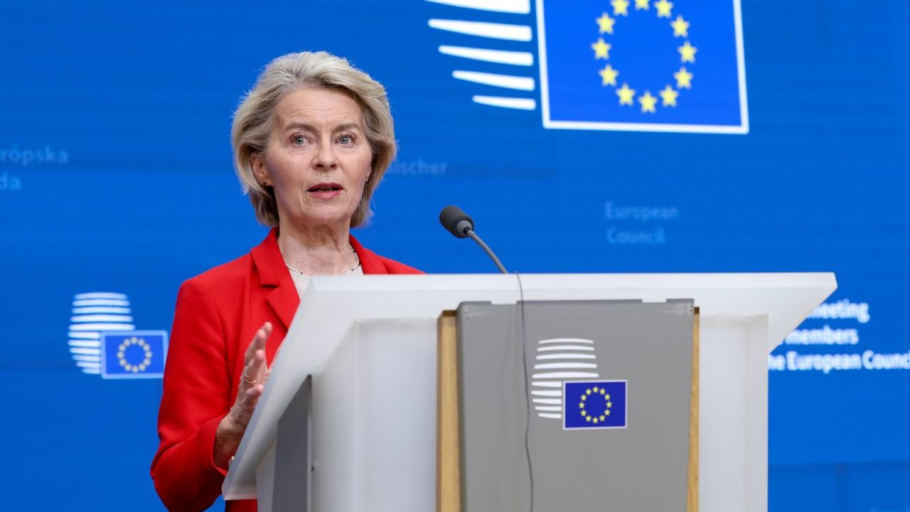 BRÜKSEL, 23 Ocak (Xinhua) -- Belçika'nın başkenti Brüksel'de düzenlenen AB liderleri olağanüstü zirvesinin ardından basın toplantısına katılan Avrupa Birliği Komisyonu Başkanı Ursula von der Leyen, 23 Ocak 2026. Avrupa Birliği Komisyonu Başkanı Ursula von der Leyen, cuma günü Brüksel'de, AB liderlerinin olağanüstü zirvesi sonrasında düzenlenen basın toplantısında, Danimarka'ya bağlı özerk bölge Grönland için yakın zamanda kapsamlı bir yatırım paketi sunacaklarını ve Kuzey Kutbu'na uyumlu savunma ekipmanlarına yapılan harcamaları artıracaklarını açıkladı. (Fotoğraf: Avrupa Birliği/Dağıtım Xinhua aracılığıyla)■