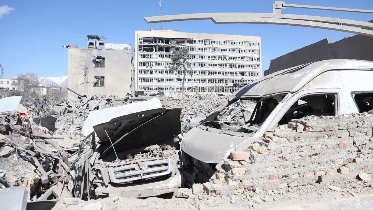 TAHRAN, 4 Mart (Xinhua) -- ABD ve İsrail'in, İran'ın başkenti Tahran'a düzenlediği hava saldırılarında birçok bina yerle bir oldu.