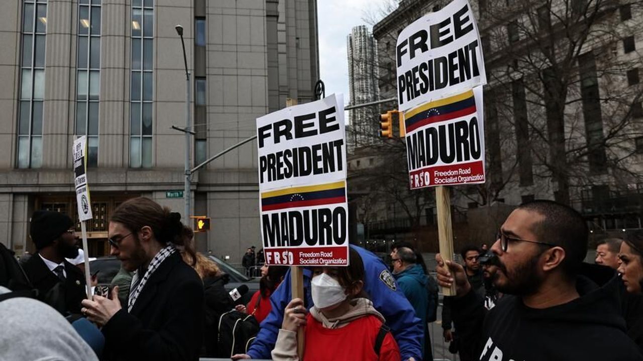 NEW YORK, 27 Mart (Xinhua) -- ABD'nin ocak ayında düzenlediği askeri operasyonda alıkonulan Venezuela Devlet Başkanı Nicolas Maduro, perşembe sabahı New York'taki bir mahkemede ikinci kez hakim karşısına çıktı. Adliye binası önünde toplanan çok sayıda kişi, Maduro'nun serbest bırakılması için destek gösterisi düzenledi.