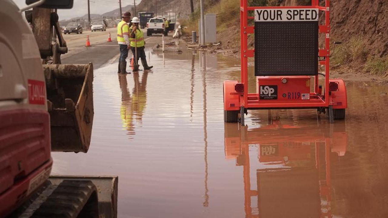 ABD'nin Kaliforniya eyaletindeki Los Angeles kentinde Malibu yakınlarındaki bir bölgede su basmış yolu temizleyen işçiler, 14 Ekim 2025. (Fotoğraf: Qiu Chen/Xinhua)ABD'nin Kaliforniya eyaletindeki Los Angeles kentinde Malibu yakınlarındaki bir bölgede su basmış yolu temizleyen işçiler, 14 Ekim 2025. (Fotoğraf: Qiu Chen/Xinhua)■