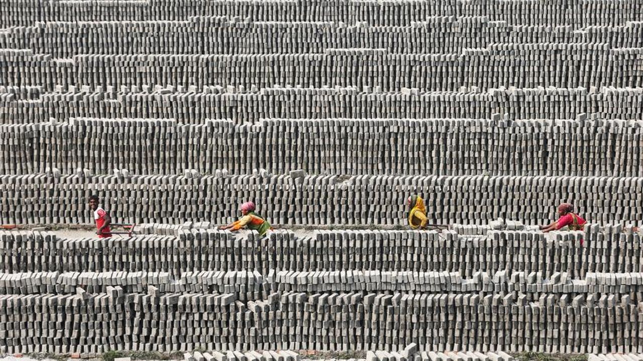 DAKKA, 2 Aralık (Xinhua) -- Bangladeş'in başkenti Dakka'daki bir tuğla fabrikasında çalışan işçiler tuğlaları işleyerek teslim ediyor.