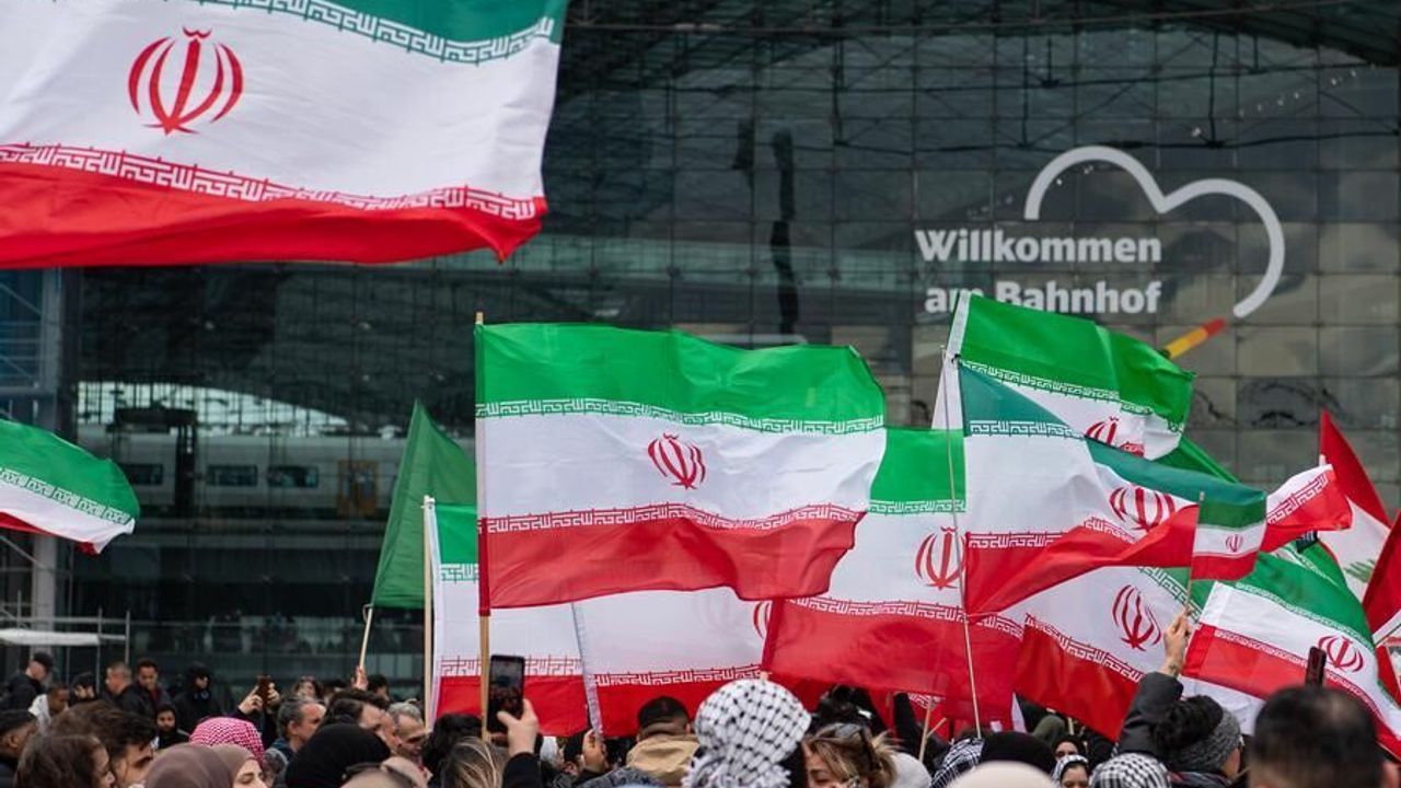 BERLİN, 6 Nisan (Xinhua) -- Almanya'nın başkenti Berlin'de halk, ABD-İsrail'in İran ve diğer ülkelere yönelik askeri operasyonlarını protesto etmek amacıyla bir tren istasyonu önünde bir araya geldi.