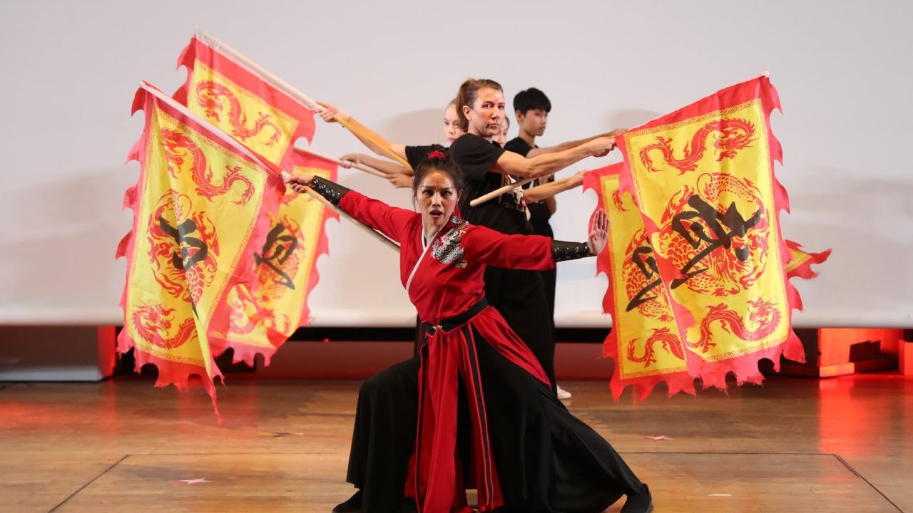 BERLİN, 4 Şubat (Xinhua) -- Almanya'nın başkenti Berlin'deki Berlin Teknik Üniversitesi'nde düzenlenen 2026 Berlin-Brandenburg Bahar Bayramı Galası'nda sahnelenen Kung Fu gösterisi, 1 Şubat 2026. Çinli öğrencilerin organize ettiği etkinlikle 17 Şubat'ta başlayacak olan ve Çin takvimine göre At Yılı'na denk gelen Çin Yeni Yılı karşılandı. (Fotoğraf: Du Zheyu/Xinhua)■