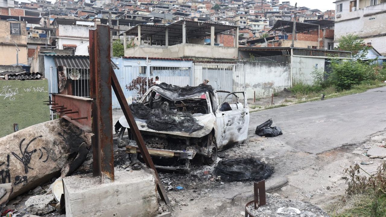 RİO DE JANEİRO, 30 Ekim (Xinhua) -- Brezilya'nın Rio de Janeiro kentinde organize suç şebekesine yönelik düzenlenen polis operasyonu sırasında çıkan şiddetli çatışmaların ardından Penha gecekondu bölgesinde görülen yanmış bir araç, 29 Ekim 2025. Brezilya'nın ikinci büyük kenti Rio de Janeiro'da bir organize suç şebekesine yönelik düzenlenen geniş çaplı polis operasyonunda en az 119 kişi hayatını kaybetti. Rio de Janeiro eyalet hükümeti, salı günkü büyük ölçekli operasyonun kentin kuzeyinde yer alan Alemao ve Penha gecekondu bölgelerindeki Comando Vermelho çetesinin üyelerini hedef aldığını duyurdu. Rio de Janeiro eyaleti sivil polis sekreteri Felipe Curi, çarşamba günkü basın toplantısında daha önce 128 olarak açıklanan ölü sayısını 119 olarak revize ederken, yaşamını yitirenlerin 115'inin suç şüphelisi, 4'ünün ise polis memuru olduğunu belirtti. (Fotoğraf: Claudia Martini/Xinhua)■
