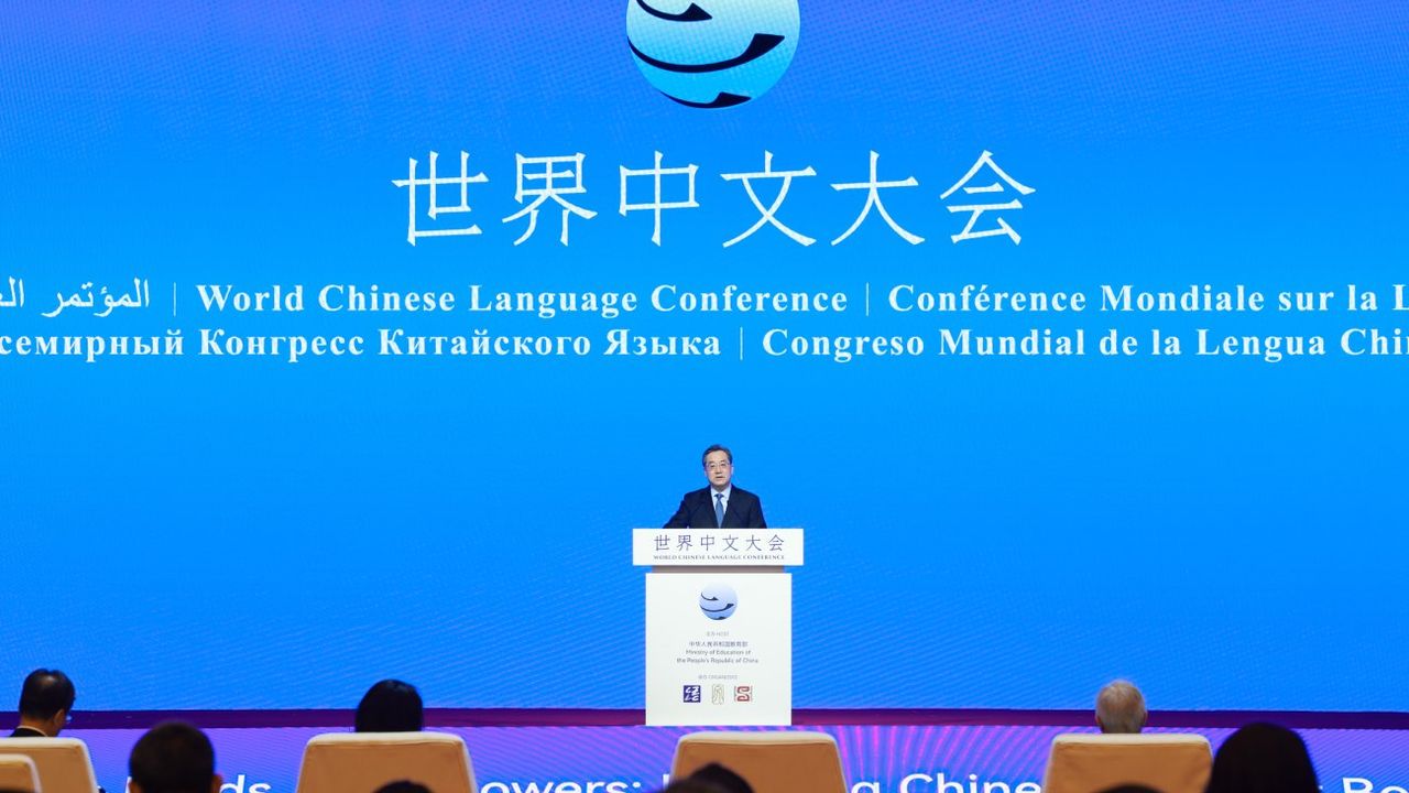 BEİJİNG, 15 Kasım (Xinhua) -- Çin Başbakan Yardımcısı ve Çin Komünist Partisi Merkez Komitesi Siyasi Büro Daimi Komitesi Üyesi Ding Xuexiang, Çin'in başkenti Beijing'de düzenlenen 2025 Dünya Çince Konferansı'nın açılış töreninde konuşma yaptı, 14 Kasım 2025. Ding, her zaman olduğu gibi tüm ülkelerin Çince eğitimini destekleyeceklerini ve bu konuda gerekli hizmeti sağlayacaklarını ve dil ve kültür etkileşimi ve işbirliğini ilerletmek adına birlikte çalışacaklarını söyledi. (Fotoğraf: Ding Lin/Xinhua)■
