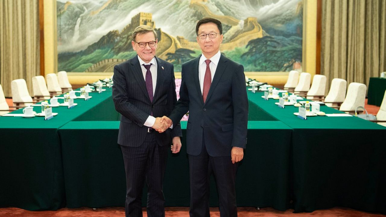 Han pazartesi günkü görüşmede karşılıklı fayda sağlayan işbirliği sayesinde kazan-kazan sonuçları elde edebilecek olan Çin ve Almanya'nın önemli ekonomik ve ticari ortaklar olduğunu söyledi. Han, iki ülke liderlerinin vardığı önemli mutabakatları hayata geçirmek, iletişimi ve diyaloğu güçlendirmek ve Çin-Almanya çok yönlü stratejik ortaklığını yeni bir seviyeye çıkarmak üzere Almanya'yla çalışmaya istekli olduklarını belirtti.