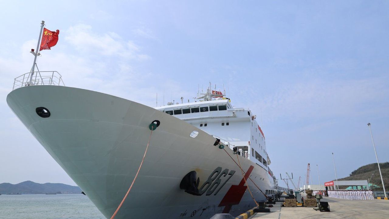 SANYA, 27 Nisan (Xinhua) -- Çin donanmasına ait 'İpek Yolu Gemisi' isimli hastane gemisi, Çin'in güneyindeki Hainan eyaletinin Sanya kentinde bir askeri limana demir attı, 26 Nisan 2026. Çin donanmasına ait hastane gemisi 'İpek Yolu Gemisi' 234 günlük yurt dışı tıbbi misyonunu tamamlamasının ardından pazar günü ülkesine geri döndü. Söz konusu misyon Çin donanması tarafından gerçekleştirilen bu türdeki en uzun görevdi. Eylül 2025'te 'Uyum Misyonu-2025' kod adlı göreve başlayan gemi, Nauru, Fiji, Tonga, Jamaika, Barbados ve Papua Yeni Gine'ye uğrayarak, ülkelerdeki yerel topluluklara geniş bir yelpazede ücretsiz tıbbi hizmetler sundu. (Fotoğraf: Cui Xiaoyang/Xinhua)■