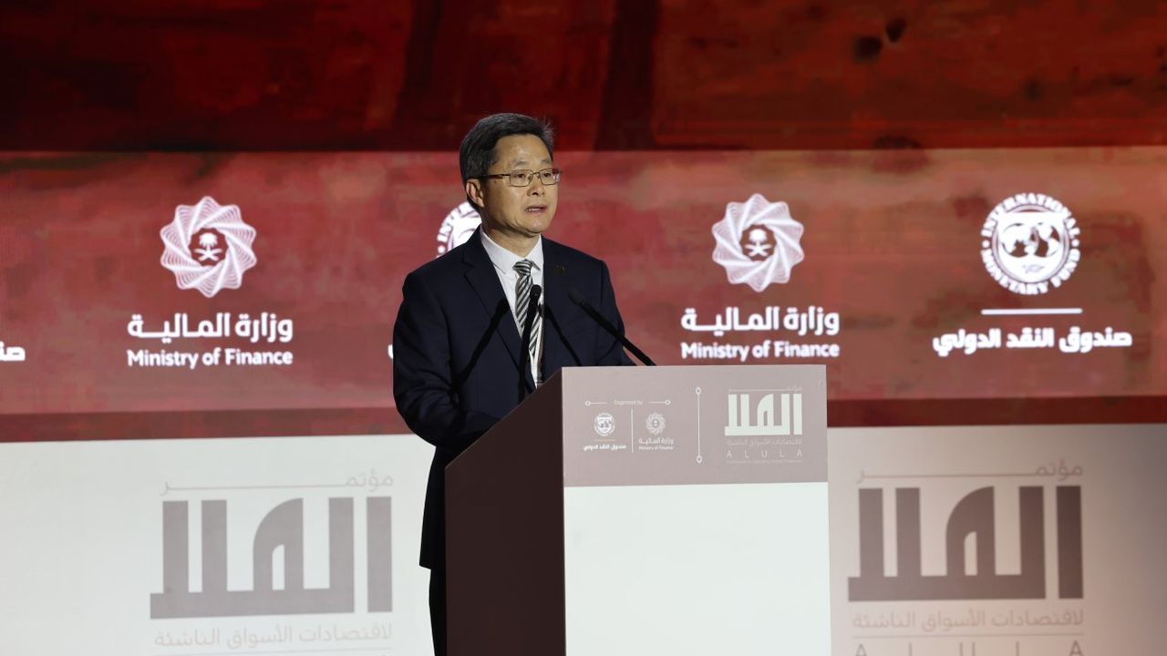 EL ULA, 9 Şubat (Xinhua) -- Suudi Arabistan'ın El-Ula kentinde düzenlenen El Ula Yükselen Piyasa Ekonomisi Konferansı'nın ikinci oturumunda konuşma yapan Çin Maliye Bakanı Lan Fo'an, 8 Şubat 2026. El-Ula Yükselen Piyasa Ekonomisi Konferansı'nın ikinci oturumu pazar günü Suudi Arabistan'ın El-Ula kentinde başladı. Konferansta, küresel ekonomide yaşanan köklü değişiklikler bağlamında gelişmekte olan piyasa ekonomilerinin karşılaştığı fırsatlar ve zorluklar üzerinde duruldu. (Fotoğraf: Luo Chen/Xinhua)■