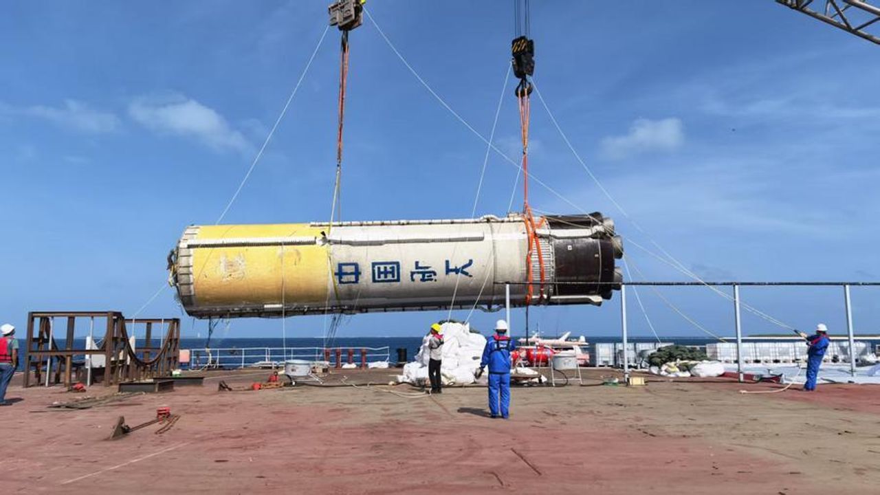 WENCHANG, 13 Şubat (Xinhua) -- Çin'in Uzun Yürüyüş-10 taşıyıcı roketinin birinci kademesi denizden başarıyla çıkarıldı. Böylece Çin, roketin birinci kademe yardımcı motorunun denizden çıkarılıp geri kazanılmasına yönelik ilk görevini başarıyla tamamlamış oldu.