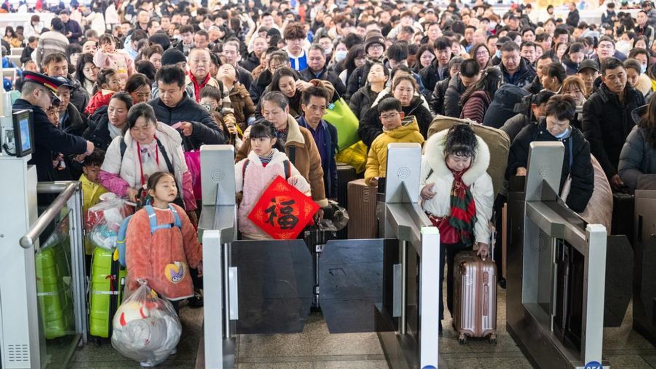 Çin'in kuzeybatısındaki Shaanxi eyaletinin merkezi Xi'an'daki Xi'an Tren İstasyonu'nun kalkış salonunda görüntülenen yolcular, 2 Şubat 2026. (Fotoğraf: Li Yibo/Xinhua)Çin'in orta kesimindeki Hubei eyaletinin merkezi Wuhan'daki Hankou Tren İstasyonu'nda görülen yolcular, 2 Şubat 2026. (Fotoğraf: Xiao Yijiu/Xinhua)Çin'in doğusundaki Anhui eyaletinin merkezi Hefei'deki Hefei Güney Tren İstasyonu'nda bir robot gösterisi izleyen yolcular, 2 Şubat 2026. (Fotoğraf: Du Yu/Xinhua)Çin'in doğusundaki Jiangsu eyaletinin Kunshan kentinde bulunan Kunshan Güney Tren İstasyonu'nun bekleme salonunda yolcular için dans eden robotlar, 2 Şubat 2026. (Fotoğraf: Wang Xuzhong/Xinhua)■