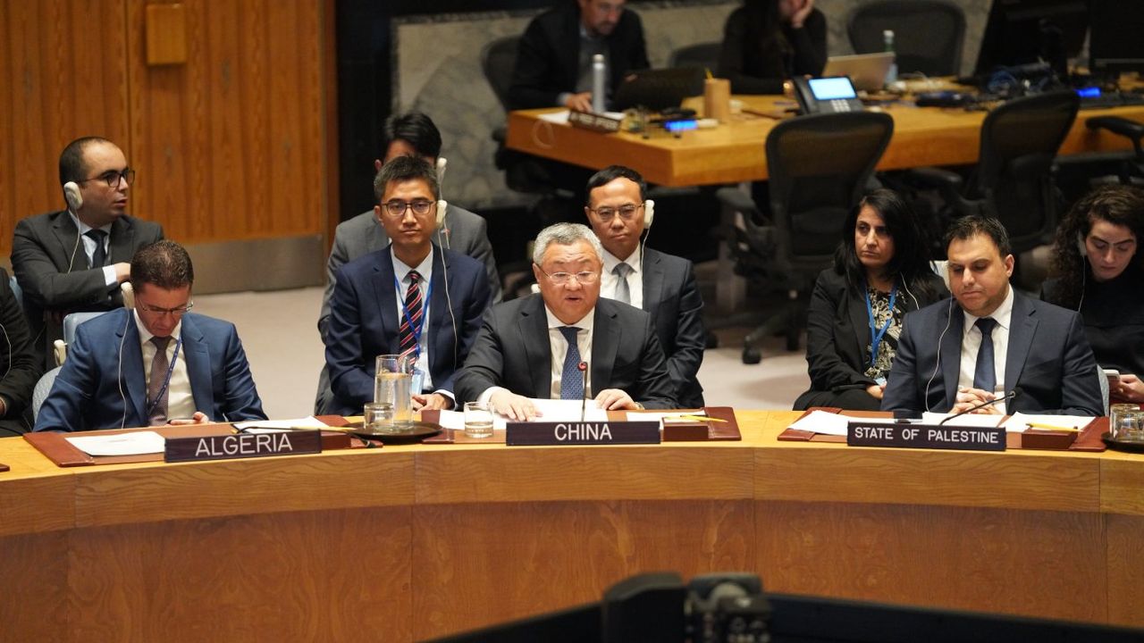 BİRLEŞMİŞ MİLLETLER, 24 Ekim (Xinhua) -- ABD'nin New York kentindeki BM Genel Merkezi'nde düzenlenen BM Güvenlik Konseyi açık oturumunda konuşan Çin'in Birleşmiş Milletler Daimi Temsilcisi Fu Cong (ortada, önde), 23 Ekim 2025. Fu oturumda Gazze'de kalıcı bir ateşkes çağrısında bulunarak 'Mevcut ateşkes, kapsamlı ve kalıcı bir ateşkesin temelini oluşturmalı' dedi. (Fotoğraf: Zhang Fengguo/Xinhua)■