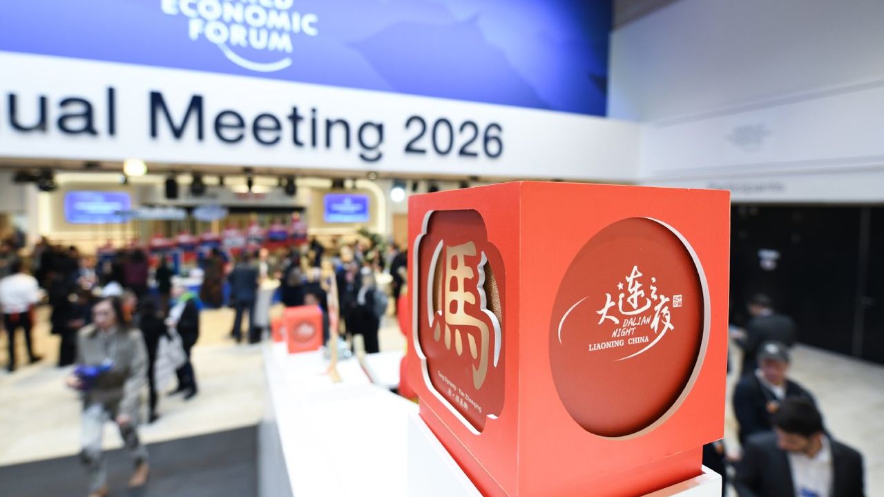 DAVOS, 21 Ocak (Xinhua) -- İsviçre'nin Davos kentinde düzenlenen Dünya Ekonomik Forumu 2026 Yıllık Toplantısı'nda düzenlenen 'Dalian Gecesi' resepsiyonundaki Çin takvimine göre At Yılı temasını yansıtan bir süsleme, 20 Ocak 2026. Çin'in kuzeydoğusundaki kıyı kenti Dalian salı akşamı İsviçre'nin Davos kentinde müzik performansları ve yöresel gurme lezzetlerin sunulduğu bir resepsiyon düzenledi. Dalian kenti, haziran ayında Yaz Davos Forumu olarak da bilinen Dünya Ekonomik Forumu Yeni Şampiyonlar 2026 Yıllık Toplantısı'na ev sahipliği yapacak. (Fotoğraf: Lian Yi/Xinhua)■