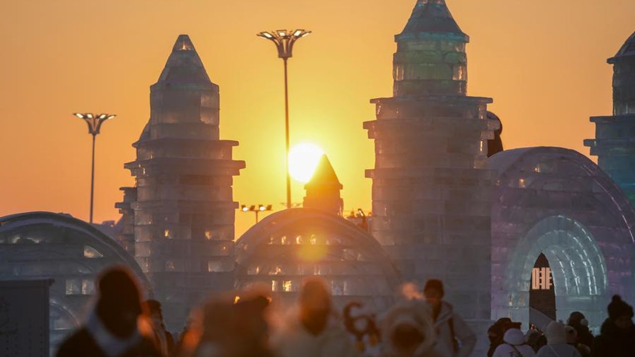 HARBİN, 22 Ocak (Xinhua) -- Çin'in kuzeydoğusundaki Heilongjiang eyaletinin merkezi Harbin'de bulunan, dünyanın en büyük buz ve kar temalı parkı Harbin Kar ve Buz Dünyası'nda sergilenen buzdan heykeller ilgi odağı oldu.