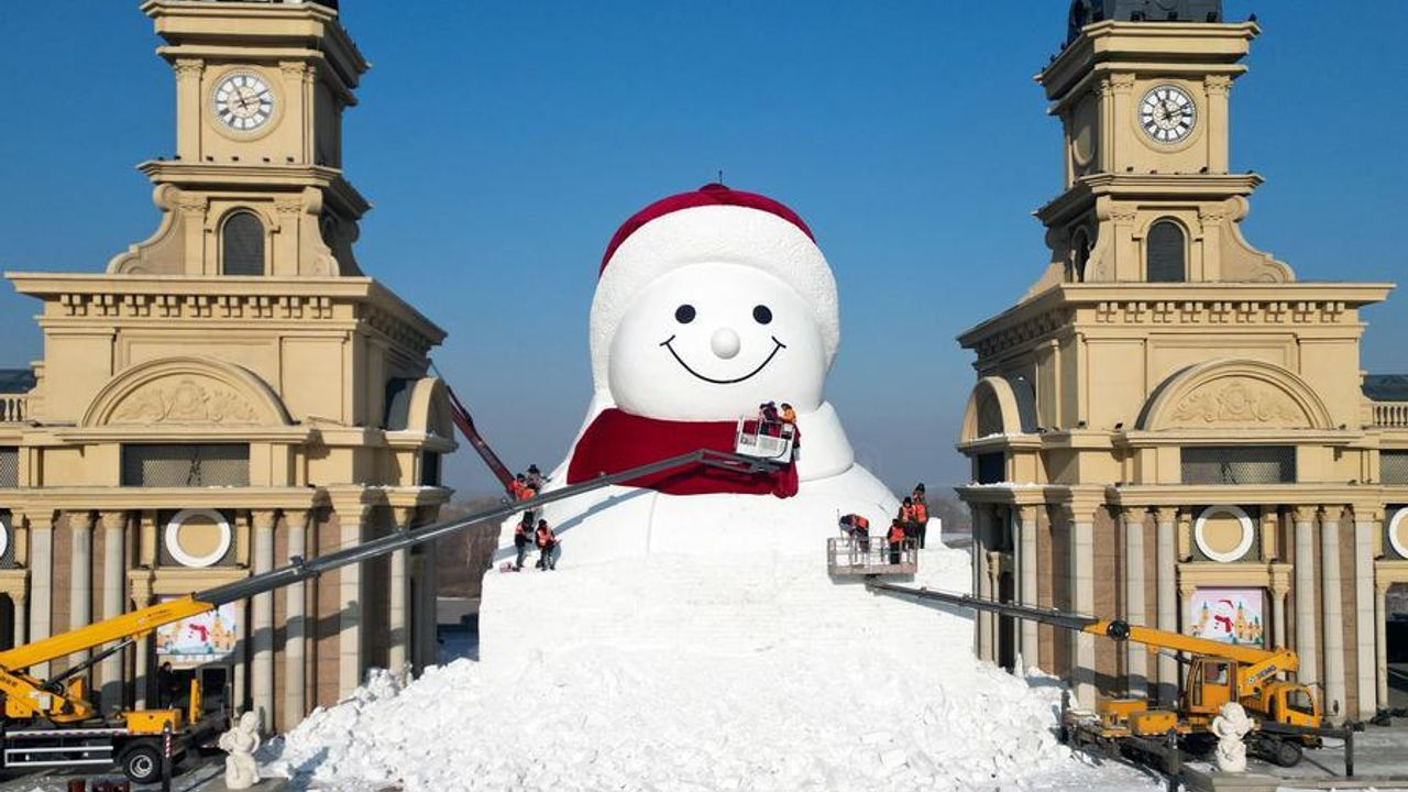 HARBİN, 15 Aralık (Xinhua) -- Çin'in kuzeydoğusundaki Heilongjiang eyaletinin merkezi Harbin'de bu yıl inşa edilen dev kardan adam yaklaşık 3.000 metreküp karla yapıldı. Geçen senekinden bir metre daha uzun olan bu yılki kardan adam, 19 metre yüksekliğinde.