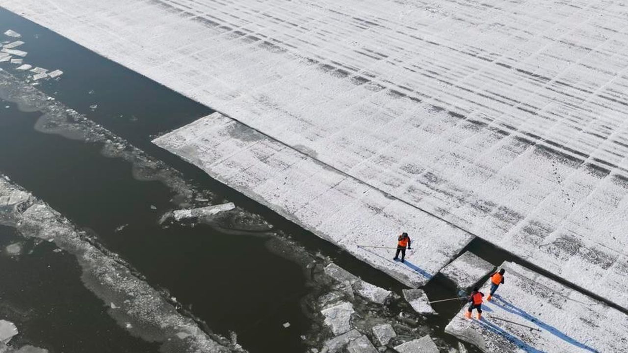 Havadan drone ile çekilen fotoğrafta, Çin'in kuzeydoğusundaki Heilongjiang eyaletinin merkezi Harbin'de bulunan Songhua Nehri'ndeki buz toplama alanı görülüyor, 9 Aralık 2025. (Fotoğraf: Wang Song/Xinhua)Havadan drone ile çekilen fotoğrafta, Çin'in kuzeydoğusundaki Heilongjiang eyaletinin merkezi Harbin'de bulunan Songhua Nehri'nden buz toplayan işçiler görülüyor, 9 Aralık 2025. (Fotoğraf: Zhang Tao/Xinhua)Havadan drone ile çekilen fotoğrafta, Çin'in kuzeydoğusundaki Heilongjiang eyaletinin merkezi Harbin'de bulunan Songhua Nehri'nden buz toplayan işçiler görülüyor, 9 Aralık 2025. (Fotoğraf: Zhang Tao/Xinhua)Havadan drone ile çekilen fotoğrafta, Çin'in kuzeydoğusundaki Heilongjiang eyaletinin merkezi Harbin'de bulunan Songhua Nehri'nden buz toplayan bir işçi görülüyor, 9 Aralık 2025. (Fotoğraf: Zhang Tao/Xinhua)■