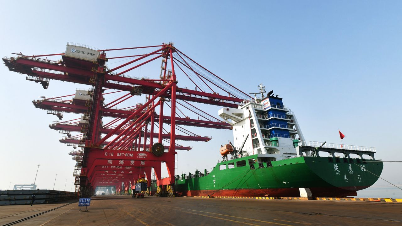 CANGZHOU, 15 Ocak (Xinhua) -- Çin'in kuzeyindeki Hebei eyaletinin Cangzhou kentinde bulunan Huanghua Limanı'nın konteyner terminaline demirlemiş kargo gemisi, 15 Ocak 2026. Cangzhou Limanı Grubu'nun verilerine göre, Huanghua Limanı'nın kargo işlem hacmi 2025 yılında bir önceki yıla kıyasla yüzde 3,08 artışla 366 milyon tona çıkarak tarihi bir zirveye ulaştı. (Fotoğraf: Yuan Liwei/Xinhua)■