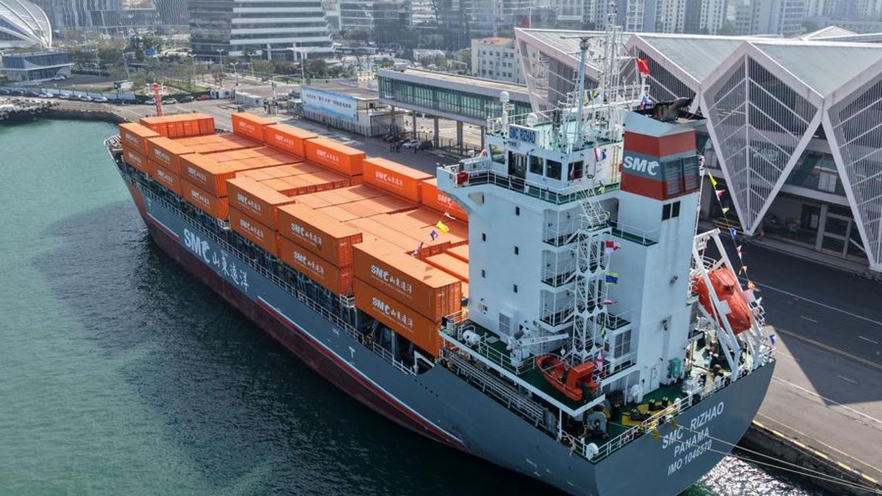 Çin'in doğusundaki Shandong eyaletinin Qingdao kentindeki Qingdao Uluslararası Kruvaziyer Terminali'nde düzenlenen Qingdao-Jeju konteyner nakliye rotasının açılış töreni, 16 Ekim 2025. (Fotoğraf: Li Ziheng/Xinhua)Drone ile çekilen fotoğrafta, Çin'in doğusundaki Shandong eyaletinin Qingdao kentindeki Qingdao Uluslararası Kruvaziyer Terminali'ne yanaşan, Qingdao-Jeju konteyner nakliye rotasının ilk seferini gerçekleştiren 'SMC RIZHAO' gemisi görülüyor, 16 Ekim 2025. (Fotoğraf: Li Ziheng/Xinhua)Çin'in doğusundaki Shandong eyaletinin Qingdao kentindeki Qingdao Uluslararası Kruvaziyer Terminali'ne yanaşan, Qingdao-Jeju konteyner nakliye rotasının ilk seferini gerçekleştiren 'SMC RIZHAO' gemisinin güvertede sıralanan mürettebatı, 16 Ekim 2025. (Fotoğraf: Li Ziheng/Xinhua)Drone ile çekilen fotoğrafta, Çin'in doğusundaki Shandong eyaletinin Qingdao kentindeki Qingdao Uluslararası Kruvaziyer Terminali'ne yanaşan, Qingdao-Jeju konteyner nakliye rotasının ilk seferini gerçekleştiren 'SMC RIZHAO' gemisi görülüyor, 16 Ekim 2025. (Fotoğraf: Li Ziheng/Xinhua)Drone ile çekilen fotoğrafta, Çin'in doğusundaki Shandong eyaletinin Qingdao kentindeki Qingdao Uluslararası Kruvaziyer Terminali'ne yanaşan, Qingdao-Jeju konteyner nakliye rotasının ilk seferini gerçekleştiren 'SMC RIZHAO' gemisi görülüyor, 16 Ekim 2025. (Fotoğraf: Li Ziheng/Xinhua)■