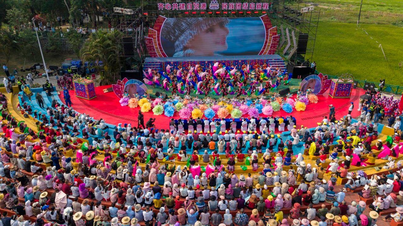 BEİJİNG, 20 Nisan (Xinhua) -- Havadan drone ile çekilen fotoğrafta, Çin'in güneyinde yer alan Hainan eyaletine bağlı Qionghai kentindeki Sanyuesan Festivali kutlamaları görülüyor, 19 Nisan 2026. Geleneksel bir festival olan Sanyuesan, Çin'deki çeşitli etnik gruplar tarafından Ay Takvimi'nin üçüncü ayının üçüncü günü kutlanıyor. Festival bu yıl 19 Nisan'a denk geliyor. (Fotoğraf: Meng Zhongde/Xinhua)■