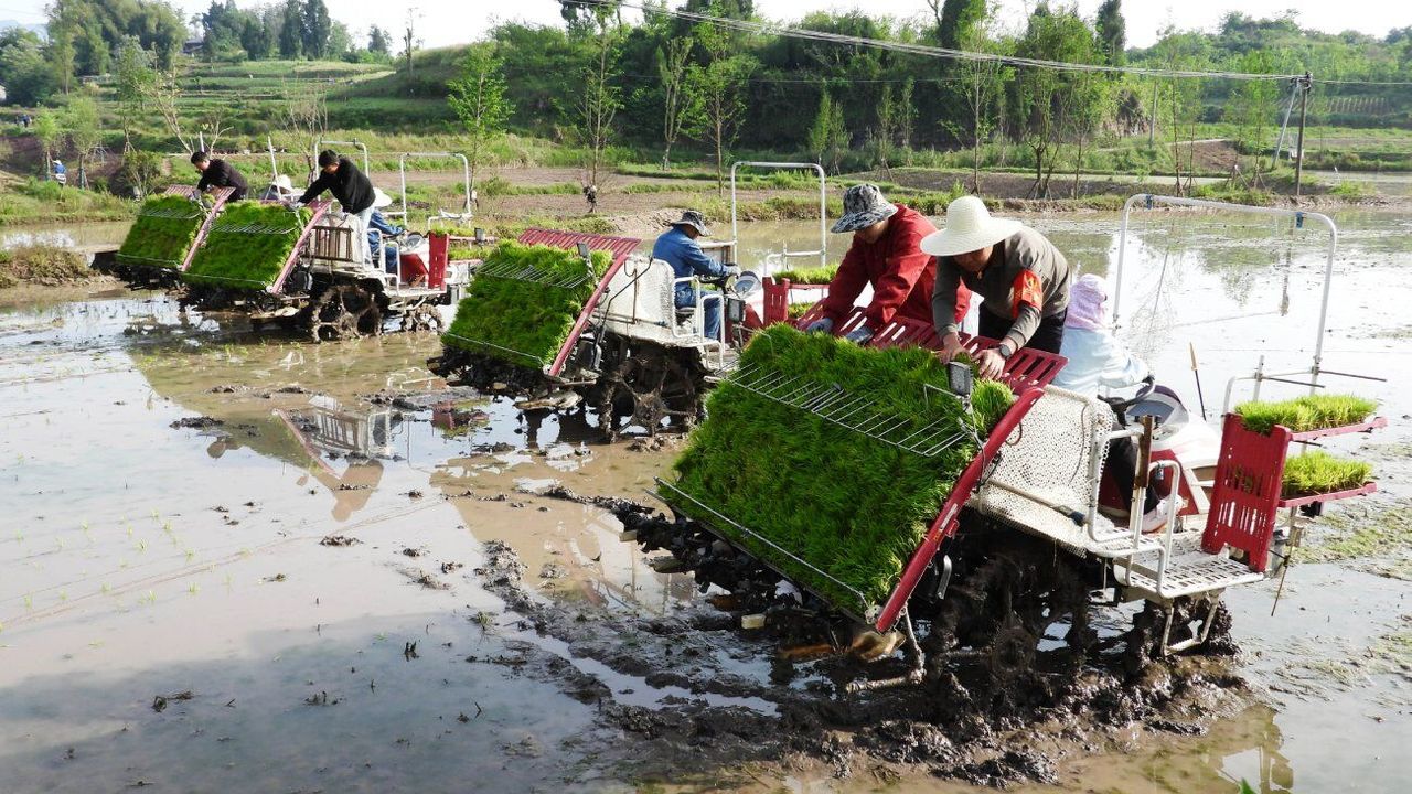 BEİJİNG, 28 Nisan (Xinhua) -- Çin'in güneybatısındaki Sichuan eyaletinin Dazhou kentine bağlı Jiuyuan köyünde BeiDou Navigasyon Uydu Sistemi (BDS) ile donatılmış makinelerle çeltik fidelerini toprakla buluşturan gönüllüler ve çiftçiler, 25 Nisan 2026. (Fotoğraf: Deng Liangkui/Xinhua)■