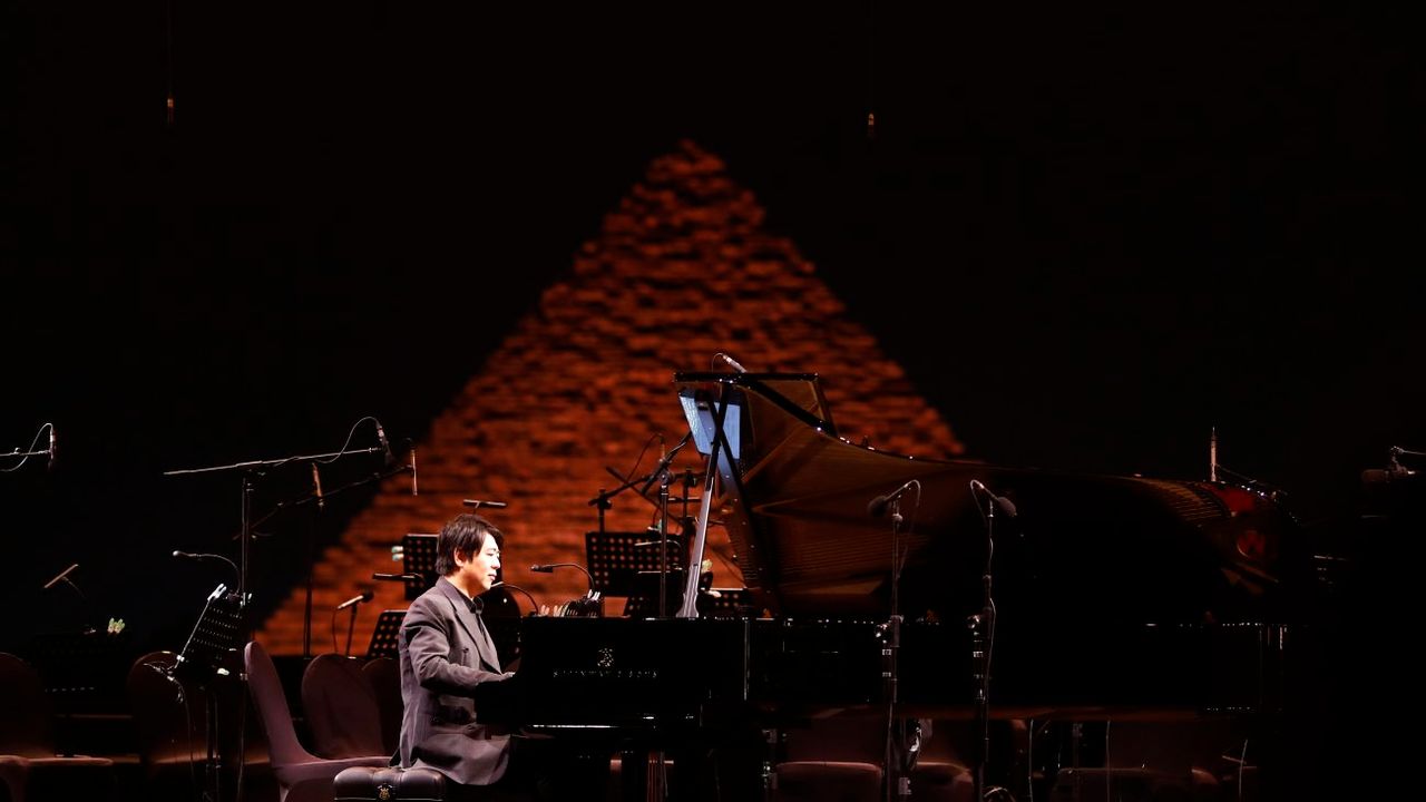 GİZA, 26 Kasım (Xinhua) -- Mısır'ın Giza kentindeki Giza Piramitleri manzaralı mekanda düzenlenen Piramit Yankısı Festivali'nde performans sergileyen Çinli piyanist Lang Lang, 24 Kasım 2025. Dünyaca ünlü Çinli piyanist Lang Lang, Mısır'da ilk kez düzenlenen Piramit Yankısı Festivali'ni pazartesi akşamı Giza Platosu'ndaki etkileyici bir konserle açtı. Açık hava sahnesine ev sahipliği yapan plato, antik piramitlerin görkemli silueti altında küresel klasik müzik ile zamansız tarihi mirasın dikkat çekici buluşmasına sahne oldu. (Fotoğraf: Ahmed Gomaa/Xinhua)■