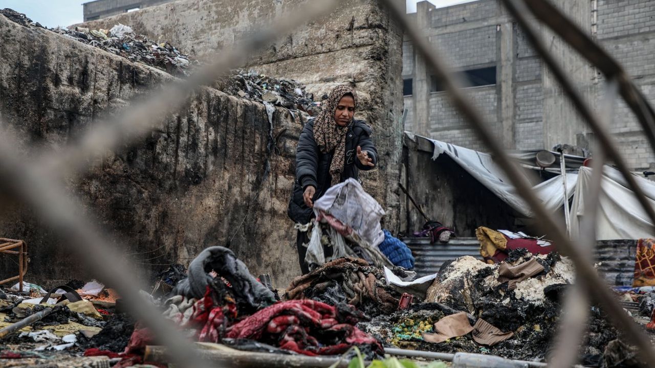 GAZZE, 3 Ocak (Xinhua) -- Gazze'de yerinden edilmiş Filistinlilerin kaldığı geçici çadırlar gece saatlerinde çıkan yangın sonrası kullanılamaz hale geldi.