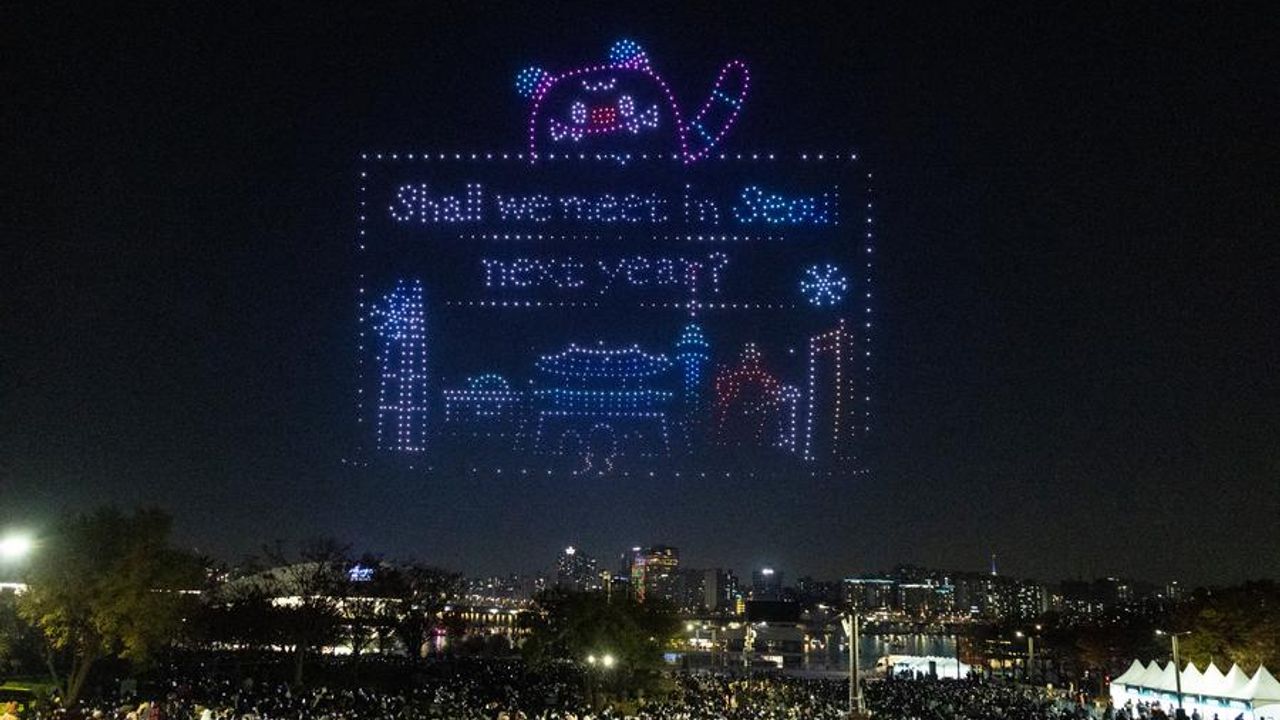 SEUL, 16 Kasım (Xinhua) -- Güney Kore'nin başkenti Seul'deki Han Nehri Parkı'nda düzenlenen drone gösterisi, oluşturulan ilgi çekici manzaralarla izleyicileri hayran bıraktı.