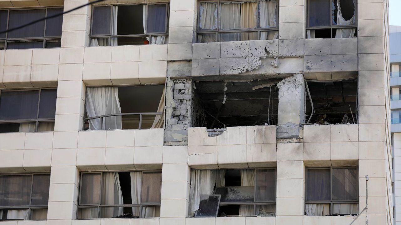 BEYRUT, 9 Mart (Xinhua) -- Lübnan'ın başkenti Beyrut'ta İsrail saldırılarında hasar gören bir otel, 8 Mart 2026. Lübnan Sağlık Bakanlığı'nın pazar günü yaptığı açıklamaya göre, İsrail'in Lübnan'ın başkenti Beyrut'un merkezindeki bir otele düzenlediği saldırıda en az 4 kişi hayatını kaybederken, 10 kişi de yaralandı. (Fotoğraf: Bilal Jawich/Xinhua)