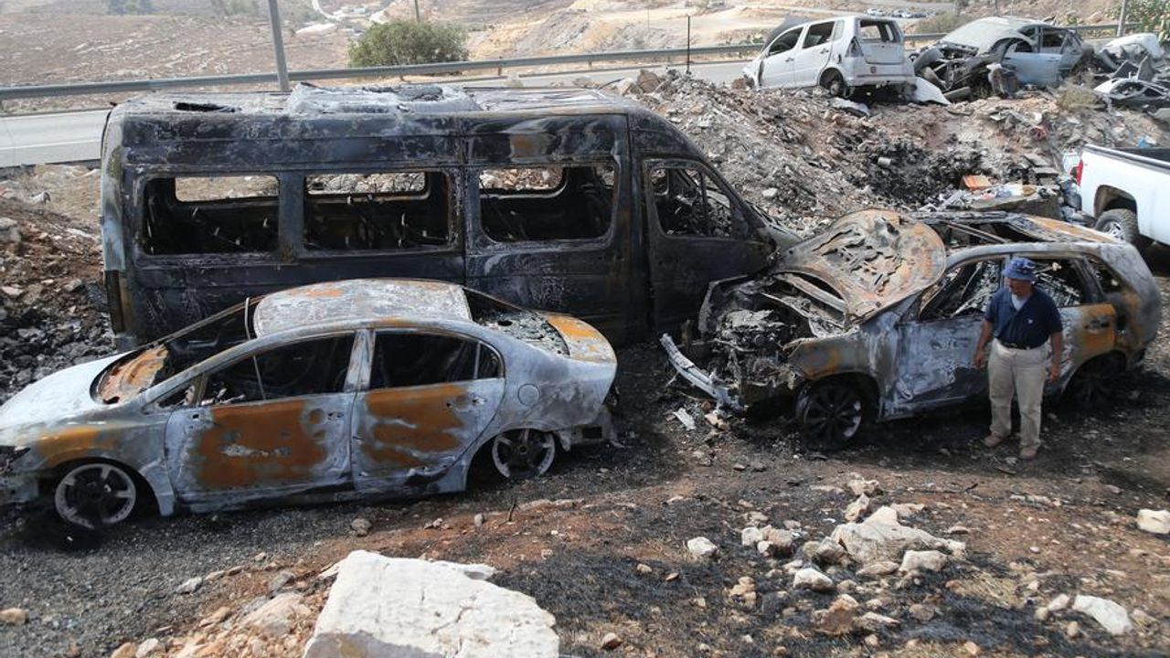 BEYTÜLLAHİM, 21 Ekim (Xinhua) -- İsrailli yerleşimciler pazar günü Beytüllahim'in güneybatısındaki Jabaa köyünde Filistinlilere ait araçları ateşe verdi.