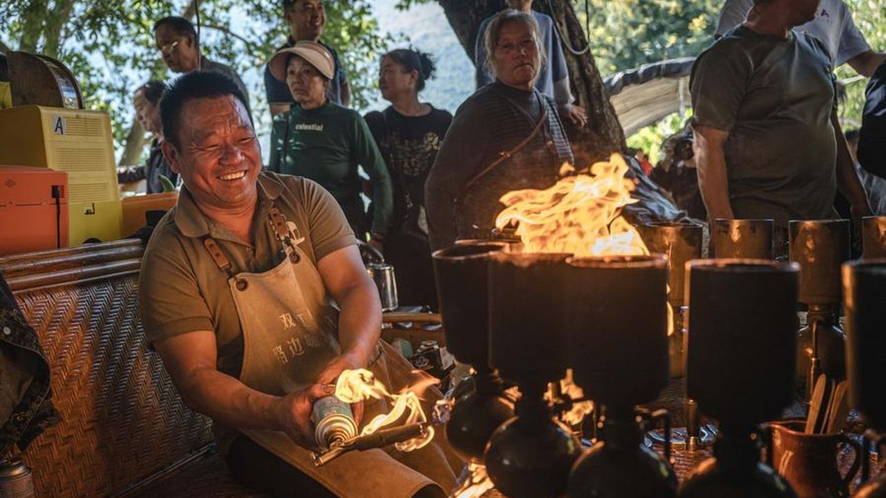 Kahve, Çin'in güneybatısındaki Yunnan eyaletinde de günlük yaşamın bir parçası ama buradaki ortam çok daha farklı. Li Jinhe, Baoshan'daki Nujiang Nehri kıyısında bir kafede, son yıllarda giderek daha fazla ilgi gören bir tekniği kullanarak pürmüzle ısıtılan sifon (vakum) kahve ekipmanıyla kahve pişiriyor.
