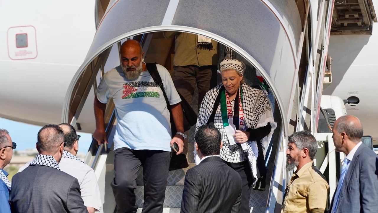 TRABLUS, 9 Ekim (Xinhua) -- Libya'nın başkenti Trablus'daki Uluslararası Mitiga Havalimanı'nda Küresel Sumud Filosu mürettebatını karşılayan insanlar, 8 Ekim 2025. Libya gemisi "Omar El Mukhtar" 21 Eylül'de Trablus'tan ayrılarak Gazze'ye giden Küresel Sumud Filosu'na katılmıştı. Yolculuk sırasında gemi İsrail tarafından durdurulmuş ve mürettebat gözaltına alınmıştı. Libyalı mürettebat çarşamba günü ülkelerine döndü. (Fotoğraf: Hazem Turkia/Xinhua)■