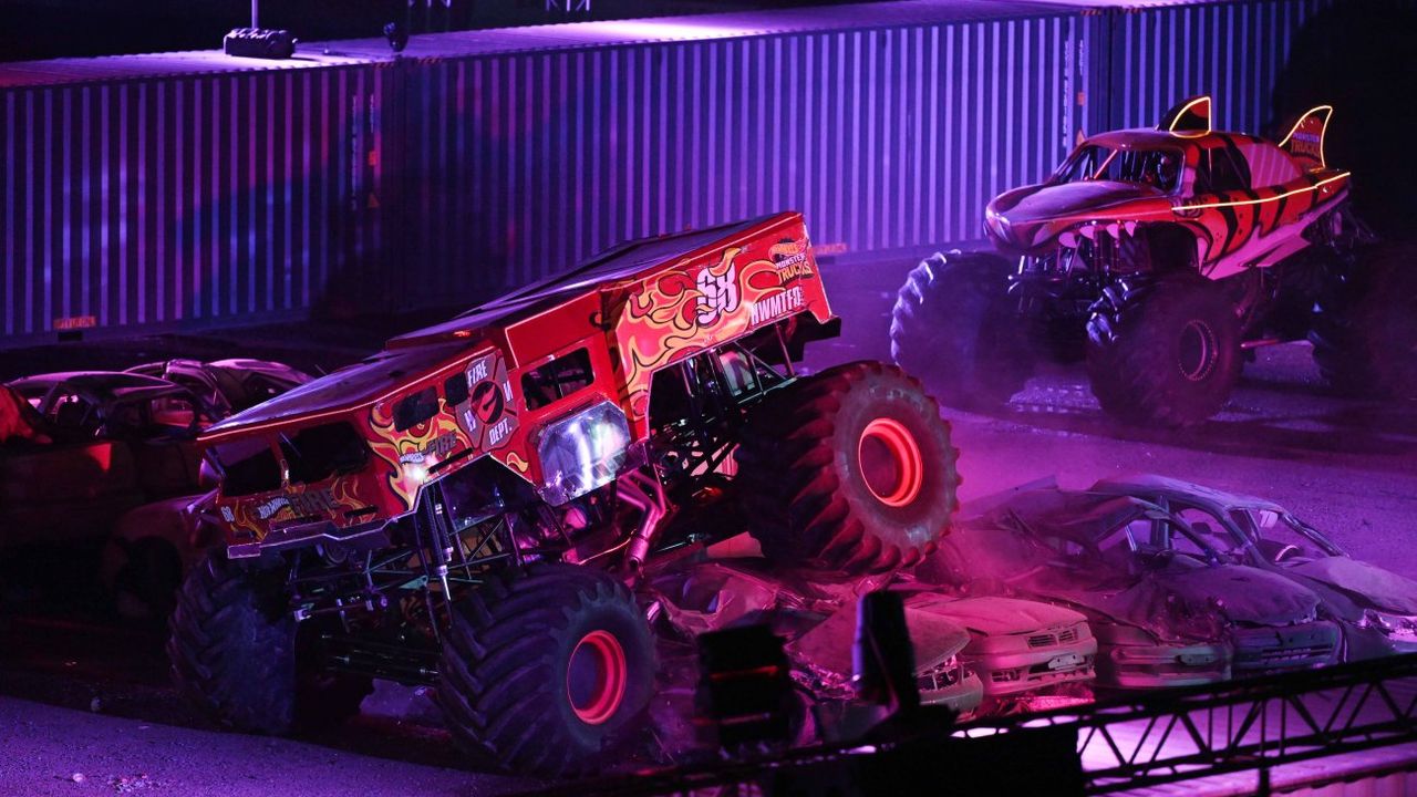 MÜBAREK EL KEBİR, 12 Ekim (Xinhua) -- Kuveyt'in Mübarek El Kebir vilayetinde Hot Wheels Canavar Kamyon Gösterisi renkli görüntülere sahne oldu.