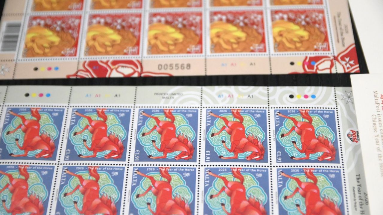 VALETTA, 10 Şubat (Xinhua) -- Malta'nın başkenti Valletta'da Çin Yeni Yılı kapsamında basılan At Yılı posta pulları, 9 Şubat 2026. Malta Posta İdaresi, Çin Yeni Yılı kutlamaları kapsamında pazartesi günü At Yılı'na özel pul setini tanıttı. Böylece Malta, Çin Yeni Yılı onuruna üst üste üçüncü kez pul basmış oldu. (Fotoğraf: Jonathan Borg/Xinhua)■