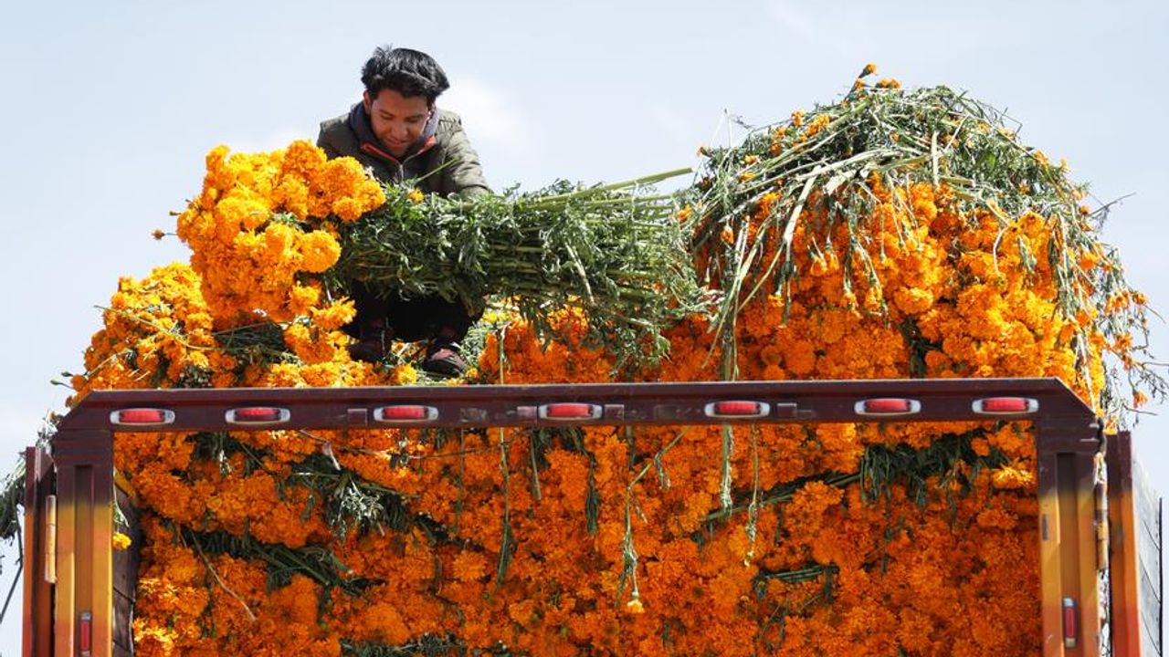 MEKSİKO, 30 Ekim (Xinhua) -- Meksika'nın başkenti Meksiko'daki Abasto pazarında, Ölüler Günü kutlamaları kapsamında kadife çiçeği ve bal kabaklarının satışında artış kaydedildi.