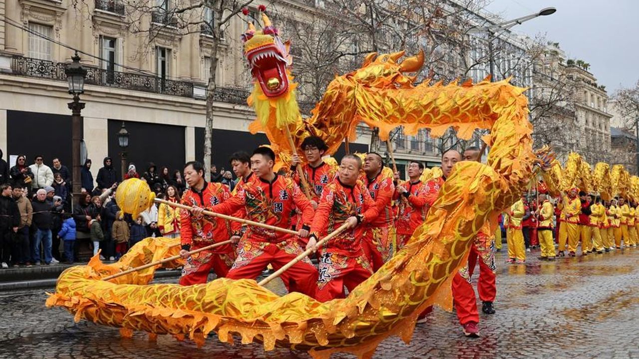 PARİS, 3 Şubat (Xinhua) -- Fransa'nın başkenti Paris'te yaklaşan Çin Yeni Yılı dolayısıyla düzenlenen renkli geçit töreninde, geleneksel Çin kıyafetleri giymiş sanatçılar çeşitli dans gösterileri sergiledi.