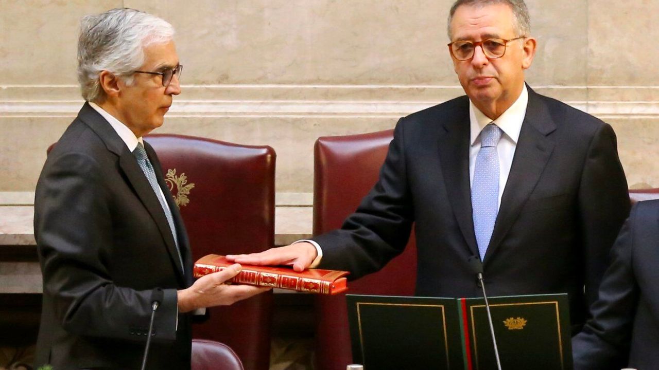 LİZBON, 10 Mart (Xinhua) -- Portekiz'in başkenti Lizbon'daki Cumhuriyet Meclisi'nde düzenlenen törende yemin ederek görevine başlayan Portekiz'in yeni Cumhurbaşkanı Antonio Jose Seguro (sağda), 9 Mart 2026. Portekiz'de cumhurbaşkanlığı ikinci tur seçimini kazanan Seguro pazartesi günü yemin ederek görevine başladı. (Fotoğraf: Xun Wei/Xinhua)■