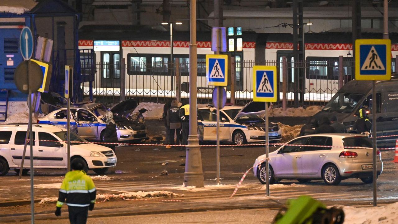 MOSKOVA, 24 Şubat (Xinhua) -- Rusya'nın başkenti Moskova'da Savelovskaya Tren İstasyonu Meydanı'nda olay yerini inceleyen ekipler, 24 Şubat 2026. Rusya İçişleri Bakanlığı salı günü yaptığı açıklamada, Moskova'daki Savelovskaya Tren İstasyonu Meydanı'nda tanımlanamayan bir cihazın patlaması sonucu bir trafik polisinin hayatını kaybettiğini ve iki polisin ise yaralandığını duyurdu. (Fotoğraf: Hao Jianwei/Xinhua)■