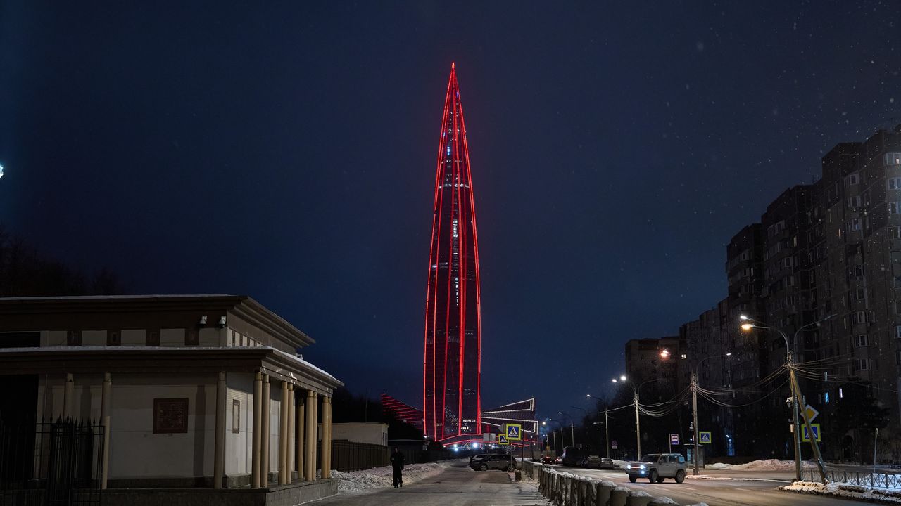 ST. PETERSBURG, 16 Şubat (Xinhua) -- Rusya'nın St. Petersburg kentinde Çin Yeni Yılı'nı kutlamak üzere 'Çin kırmızısı' ile aydınlatılan, Rusya'nın en yüksek binası Lahta Center, 15 Şubat 2026. (Fotoğraf: Guo Feizhou/Xinhua)■