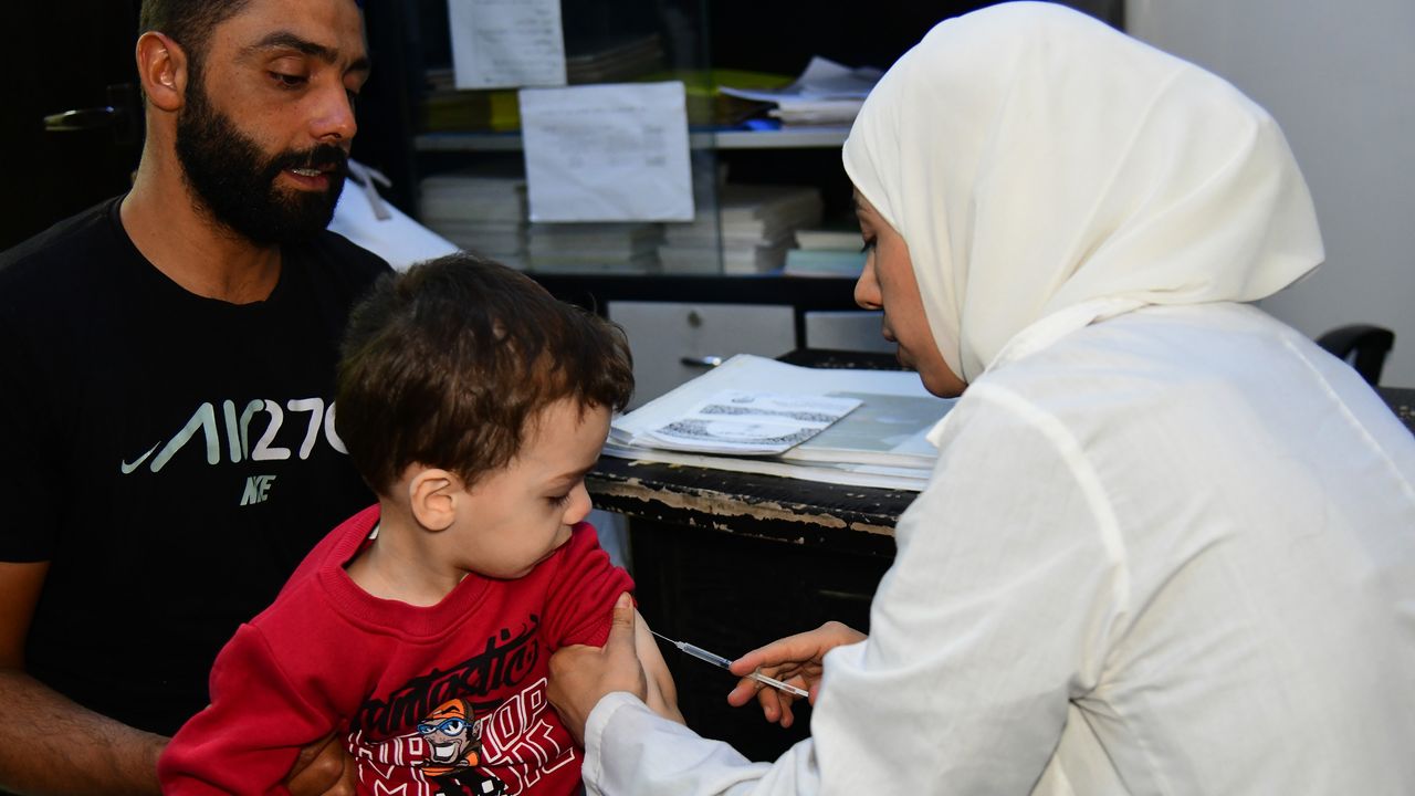 ŞAM, 13 Ekim (Xinhua) -- Suriye'nin başkenti Şam'da bir çocuğa kızamık aşısı yapan sağlık personeli, 12 Ekim 2025. Suriyeli yetkililer, kızamığın yayılmasını önlemek ve ülkede çocukluk çağı aşılama oranlarını artırmak amacıyla 7 ay ile 5 yaş arasındaki çocuklar için ülke genelinde bir aşı kampanyası başlattı. (Fotoğraf: Ammar Safarjalani/Xinhua)■