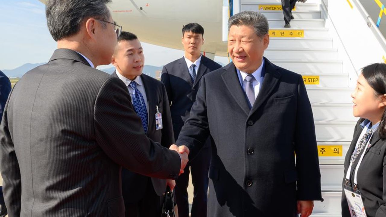Çin Cumhurbaşkanı Xi Jinping, Güney Kore'nin Busan kentindeki Gimhae Uluslararası Havalimanı'nda Güney Kore Dışişleri Bakanı Cho Hyun'un da aralarında bulunduğu üst düzey Güney Koreli yetkililer tarafından karşılandı, 30 Ekim 2025. (Fotoğraf: Huang Jingwen/Xinhua)Çin Cumhurbaşkanı Xi Jinping, Güney Kore'nin Busan kentindeki Gimhae Uluslararası Havalimanı'nda Güney Kore Dışişleri Bakanı Cho Hyun'un da aralarında bulunduğu üst düzey Güney Koreli yetkililer tarafından karşılandı, 30 Ekim 2025. (Fotoğraf: Huang Jingwen/Xinhua)■