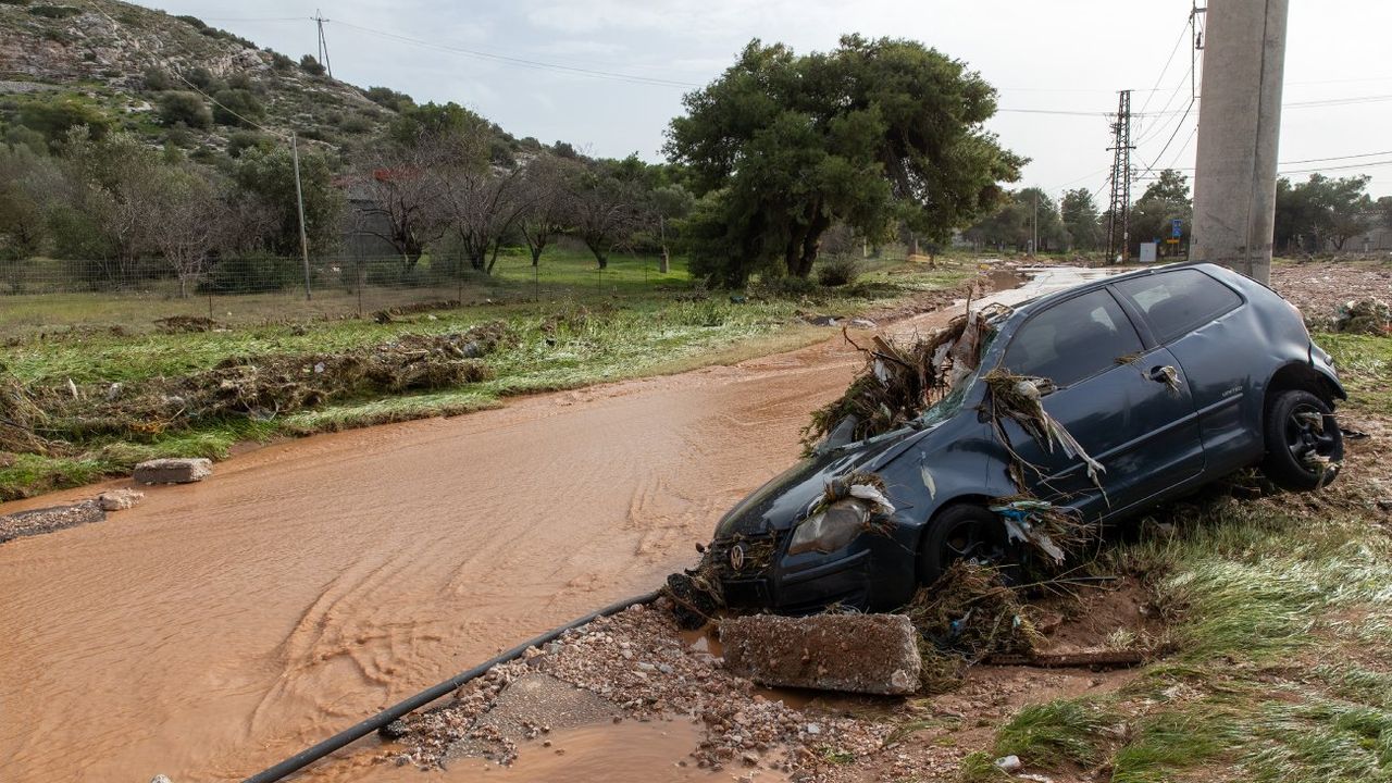 VARİ, 23 Ocak (Xinhua) -- Yunanistan'ın başkenti Atina'nın güneyindeki Vari'de meydana gelen selde hasar görmüş bir araç, 21 Ocak 2026. Yetkililer çarşamba günü ülkeyi etkisi altına alan şiddetli hava koşulları nedeniyle 2 kişinin hayatını kaybettiğini duyurdu. (Fotoğraf: Marios Lolos/Xinhua)■