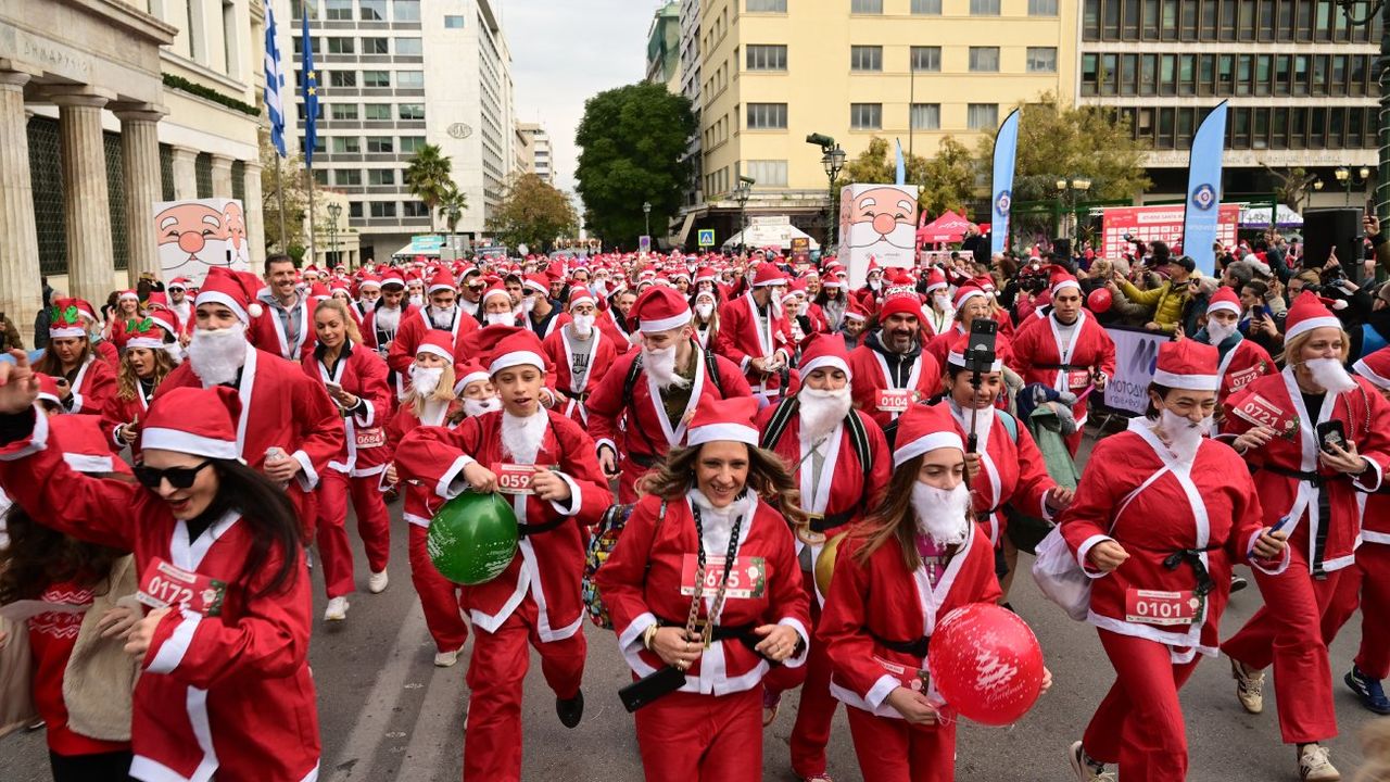 ATİNA, 22 Aralık (Xinhua) -- Yunanistan'ın başkenti Atina'da düzenlenen 2025 Atina Noel Baba Koşusu'na katılan insanlar, 21 Aralık 2025. Noel Baba kıyafetleri giyen binlerce koşucu, her yıl düzenlenen Atina Noel Baba Koşusu'na katıldı. Tatil dönemi kapsamında düzenlenen hayır amaçlı koşu 2,8 kilometrelik bir parkurdan oluşuyor. (Fotoğraf: Marios Lolos/Xinhua)